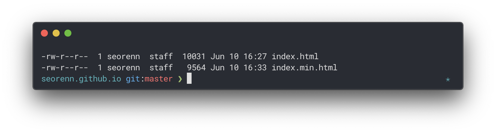 위 명령은 input.html 파일을 압축해서 output.html로 압축해주는 명령의 예제입니다. 자주 사용할 것 같다면 alias 같은 것으로 만들어둬도 될 것 같습니다.