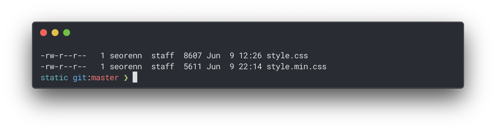 위 명령은 input.css 파일을 output.css 로 압축해 줍니다.