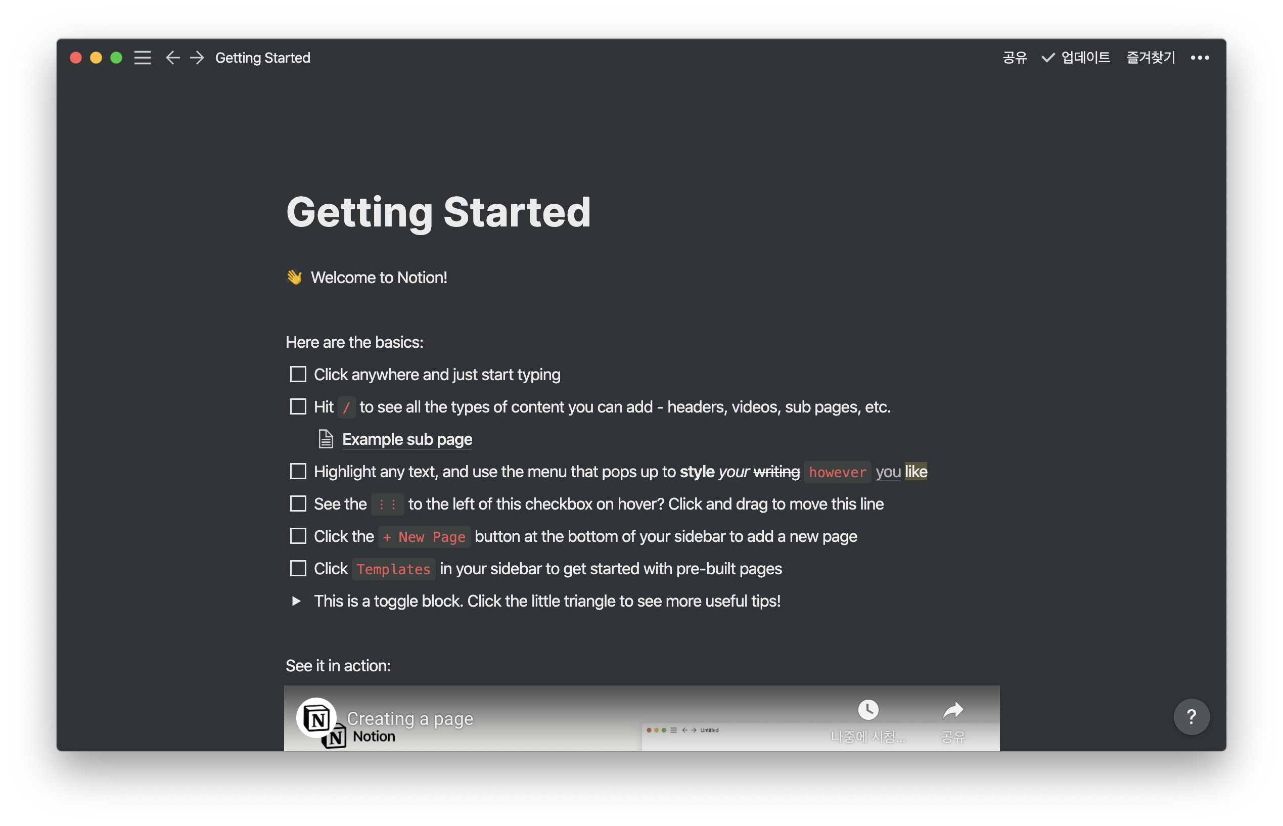 노션은 굉장한 노트용 에디터를 제공합니다. 기본적으로 마크다운 문법 비슷하게 지원하는 전용 에디터를 제공하고, 마우스를 이용해 문서를 조작하거나 편집하는 것도 상당히 직관적입니다. 당연히 이미지를 넣기도 쉽지요. 거기다 위 스샷처럼 유튜브 영상도 임베딩 시킬 수 있습니다.