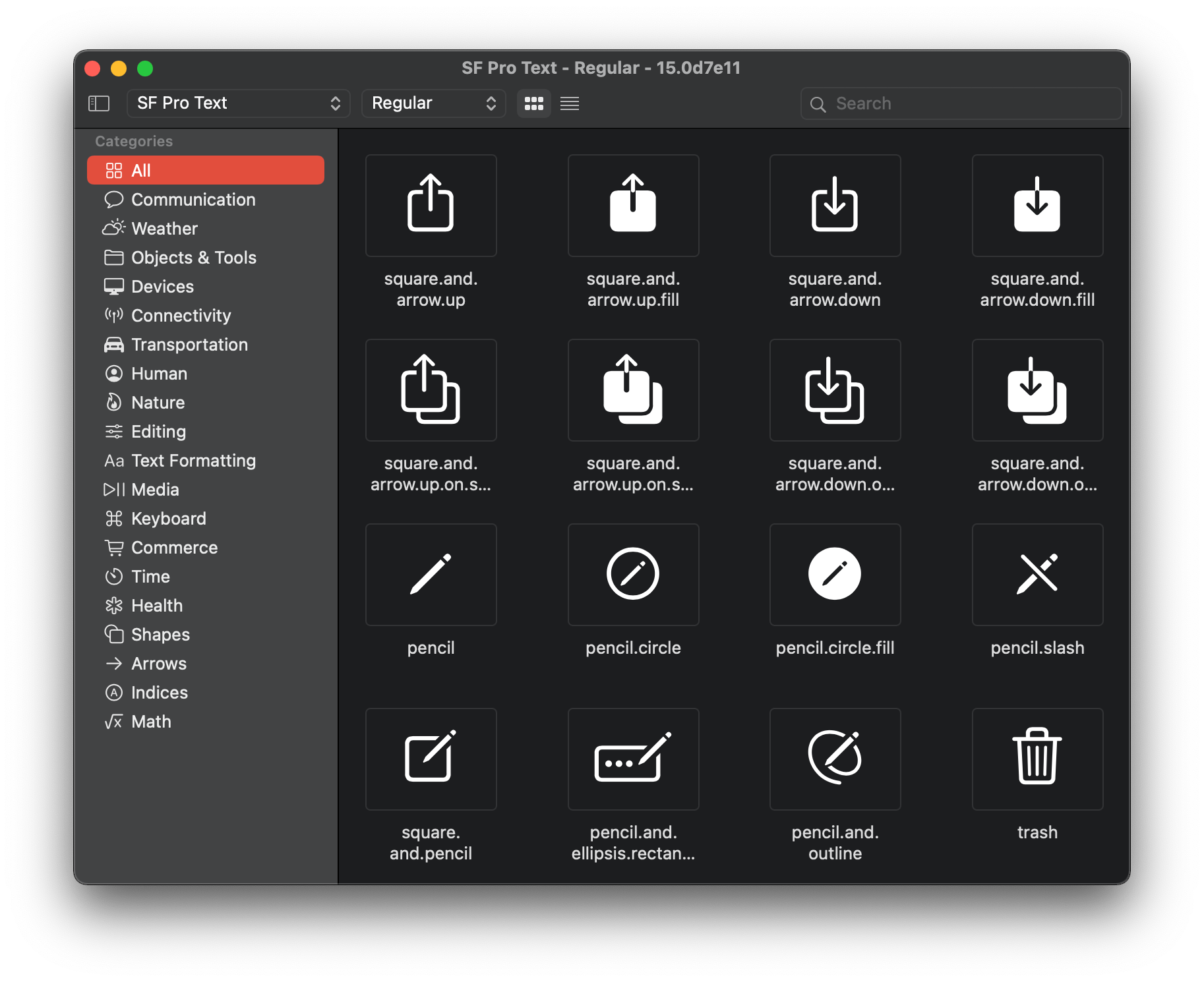 "pencil"이라 쓴 부분이 바로 SF Symbols에서 볼 수 있는 각 아이콘의 이름입니다.
