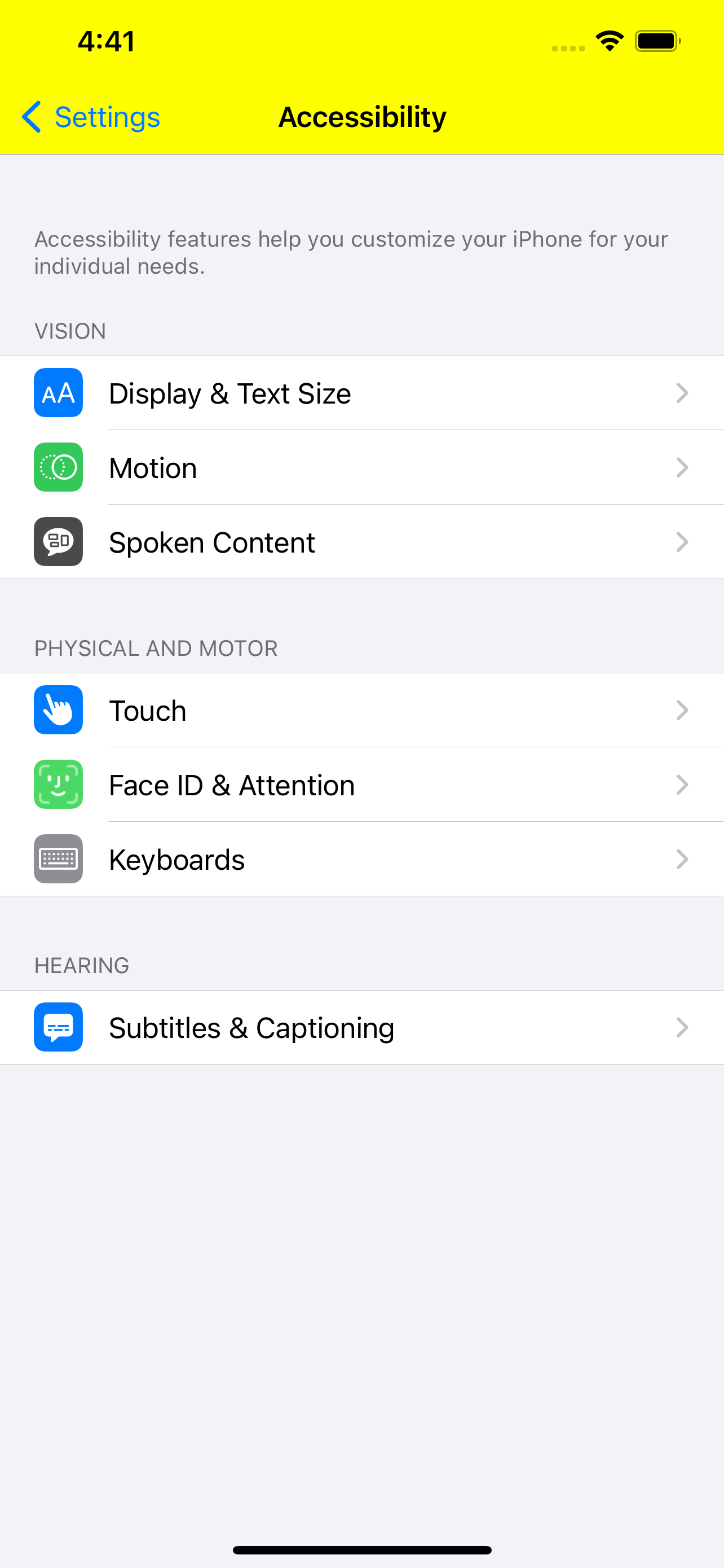 전부 문제가 있는 것도 아니고 유독 저런 제목이나 팝업 배경 같은 - 아마도 이게 Tint Color였던가? - 것들만 노랗게 이상하게 표시되고 있었다. 무슨 오줌 액정 문제도 아니고 참 거슬린다. Accessibility에서 뭔가 설정되었나 찾아봐도 다 꺼져 있었다.