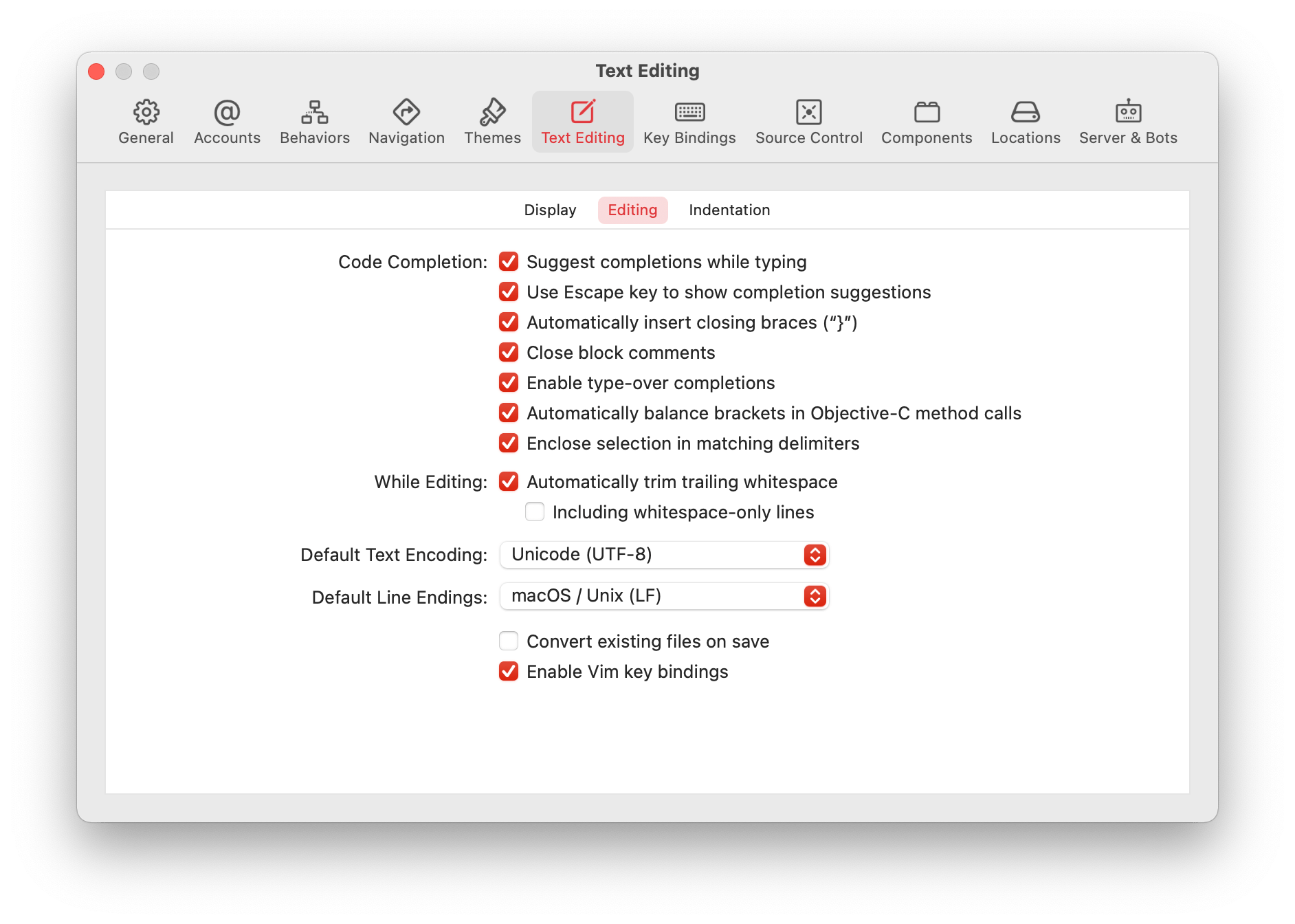 Xcode 13의 첫 베타 기준으로 Preferences - Text Editing - Editing 항목을 들여다보면 제일 아래에서 Enable Vim key bindings 체크박스를 발견할 수 있었다.
