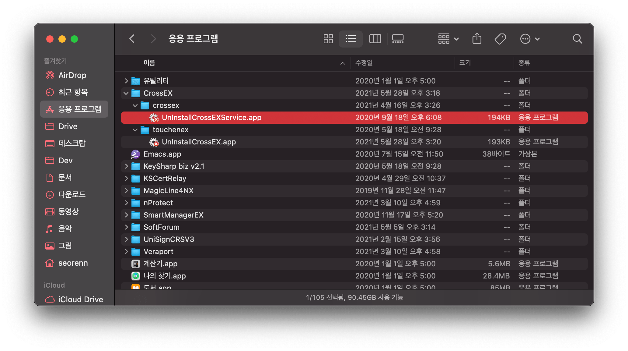 갑자기 환희와 함께 짜증이 일었다. 파인더를 열어 애플리케이션 폴더를 살펴본다. 최상단에 플러그인들이 잔뜩 깔려 있었다. 이것들을 모두 지워버리기로 했다. 어차피 뭐가 키보드 보안인지는 모르겠기도 하니 말이다.