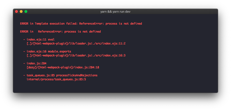 ERROR in Template execution failed: ReferenceError: process is not defined