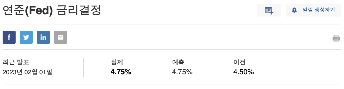 새벽에 드디어 FOMC가 끝나고 예상대로 미국의 기준금리가 25bp가 올랐다. 이제 미국의 기준금리 범위는 4.5% ~ 4.75%다.
