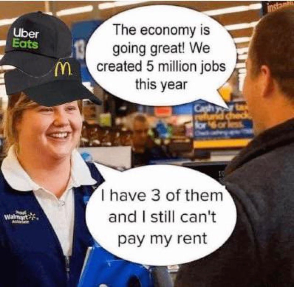 어쩌다 트위터에서 보게 된 밈이 내가 뇌피셜로 판단하는 "이번 고용 통계의 불확실성"을 대신 이야기해 주는 것 같아서 가져와봤다. 중계형 플랫폼의 일을 대행하는 업종의 경우 한 사람이 하나의 플랫폼만 쓰라는 법은 없다. 이런 플랫폼 서비스 대행업을 하는 사람은 분명 서비스 업종 취업자로 분류가 될 것이다. 그런데 한 사람이 둘 이상의 플랫폼에서 일을 하고 있다면 어떻게 될까? 이번 고용의 일시적 폭발은 대규모 정리해고 인원이 이런 단건 서비스 업종을 동시에 여럿 뛰는 것 때문에 나타난 것이 아닐까 하는 것 말이다. 사실 지표 산출 방식을 모르니 근거도 없는 뇌피셜 헛소리일 확률도 높다. (출처)