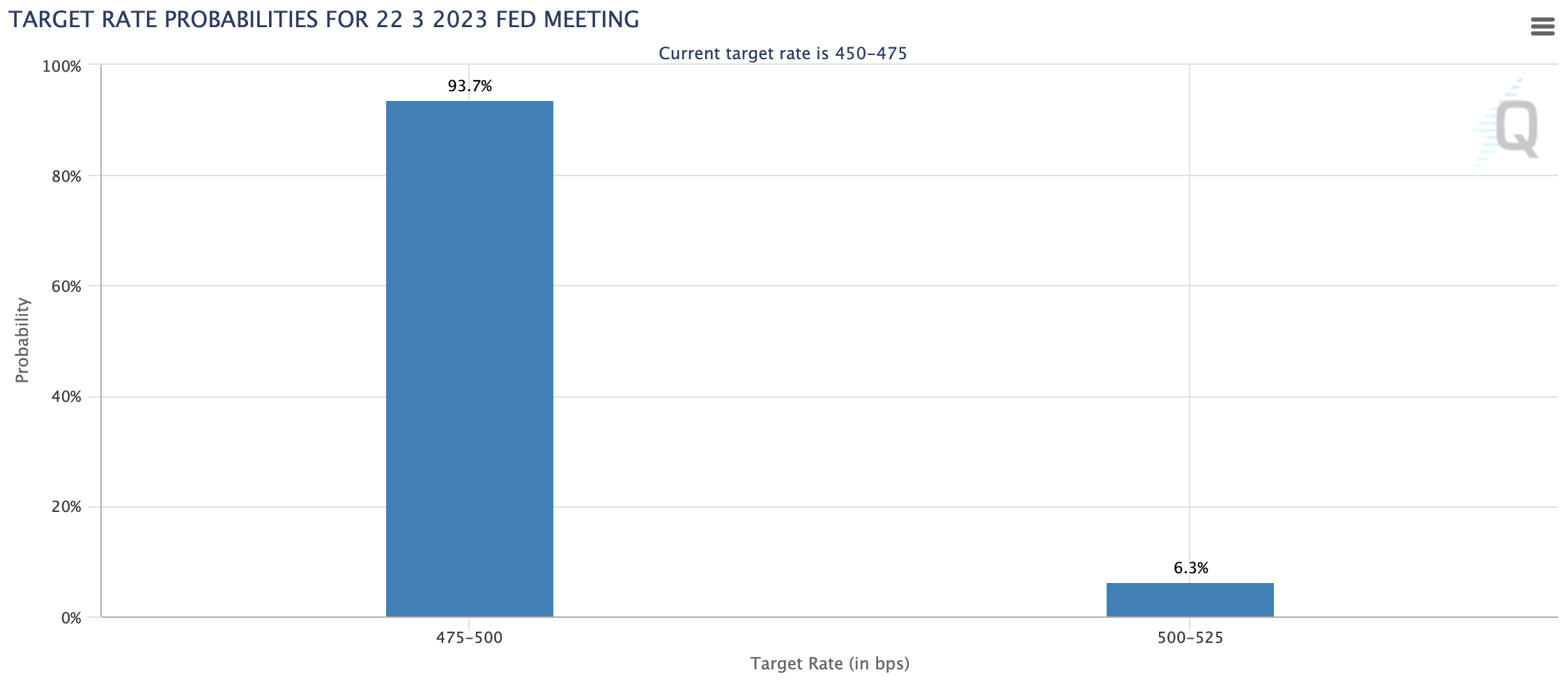 3월 FOMC에서 기준금리 인상이 얼마나 이뤄질까? 시장의 예상에서 '동결'이 사라지고 대신 '50bp 인상' 항목이 등장했다. 물론 아직은 25bp 인상안이 압도적이다. 어쨌든 최근의 고용 지표 덕분에 긴축의 끝이 좀 더 멀어졌다고 보였는데 오늘 실업수당과 관련된 지표가 등장하고 다시금 50bp 인상 가능성은 다시 낮아졌다.
