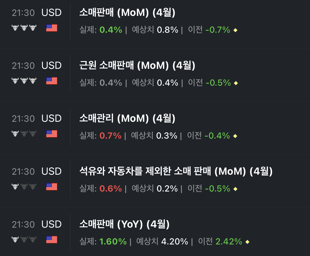 - 소매판매 지표는 대체로 지난달보다는 올랐다. 일부 예상을 하회하긴 했지만 그래도 경기침체가 거론되는 상황임을 생각하면 나쁘진 않은 것 아닌가? 아니 오히려 성장하고 있으니 다시 금리 인상 걱정을 해야 할 단계일까?