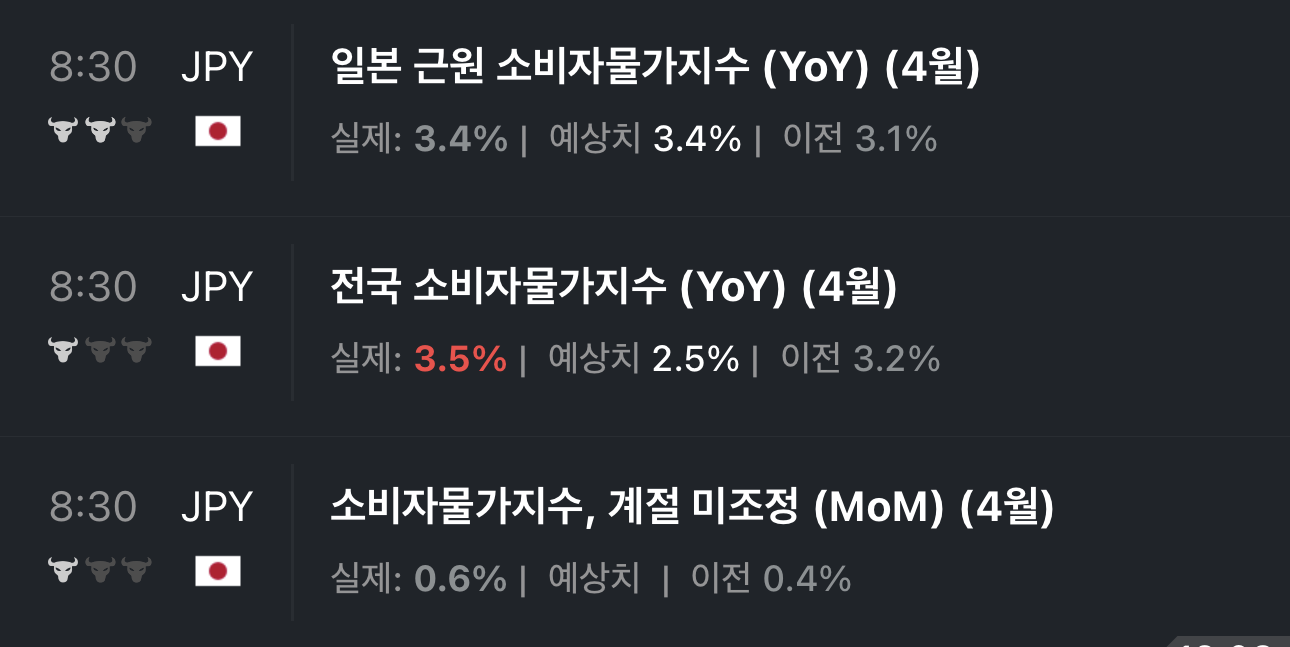 - 일본의 4월 근원물가를 볼 때 일단은 대외변수를 제외하고는 예상대로 경제가 돌아가고 있나 보다.