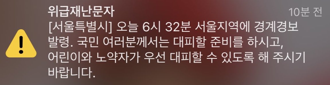 자다가 받는 재난문자는 정말 공포 그 자체다.