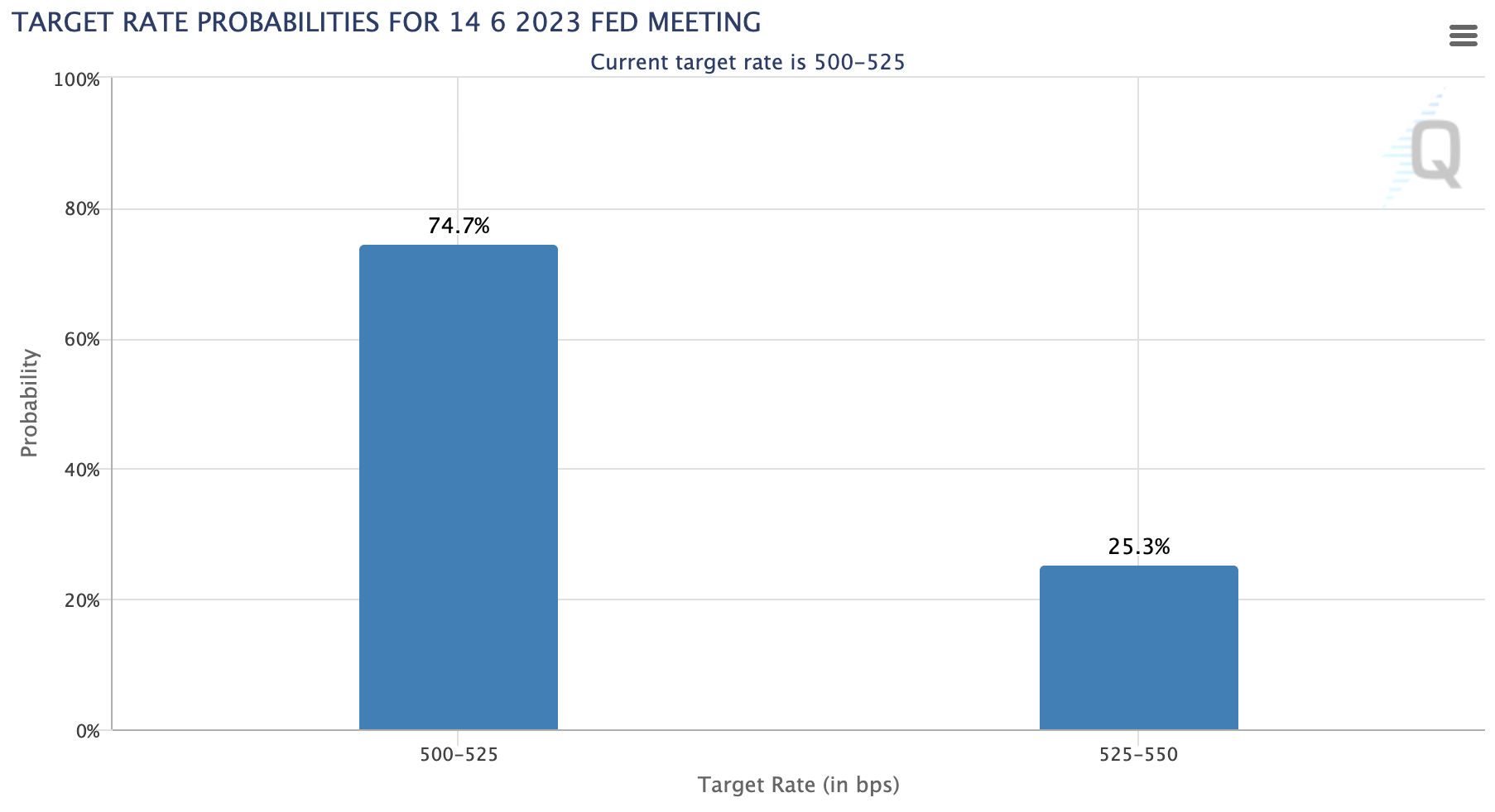 - 시장은 6월 금리 동결 확률을 더 높게 보기 시작했다. 이 정도면 PCE 발표 전 수준과 거의 비슷한 것 같다. 일시적 쉬어가기일 수도 있겠지만 시간은 좀 버는 셈일 거다. 그 사이에 인플레이션이 좀 더 잡히면 피벗이 될 수도 있으니 말이다. 물론 희망회로일 뿐이다.