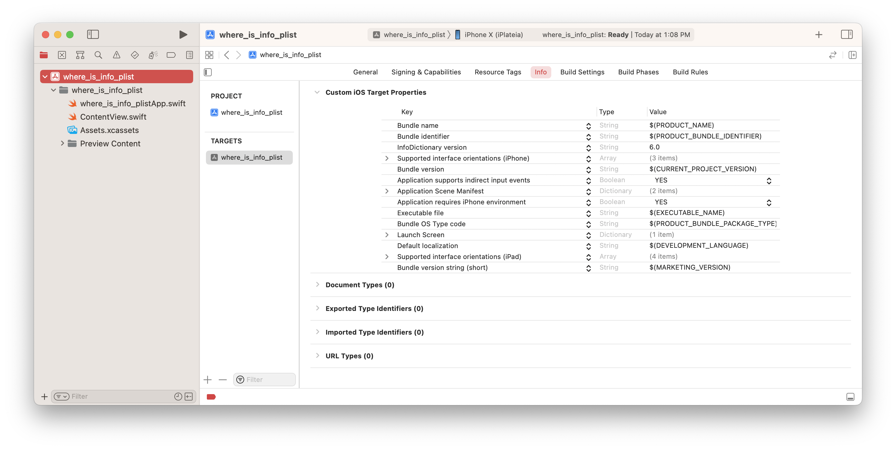 Xcode가 13 버전으로 업그레이드된 이후 겉으로 보이는 가장 큰 변화가 있다면 프로젝트에서 항상 보이던 Info.plist 파일이 사라졌다는 것이다. 앱 이름에서 부터 장치 권한 등 여러 중요한 설정을 해야 할 이 파일이 필요 없어졌을 리는 없다.