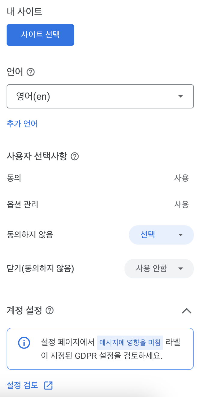 그래서 이 절차를 진행하기 위해 애드센스 페이지에서 안내되는 대로 'GDPR 메시지 만들기' 링크를 눌러봤다.