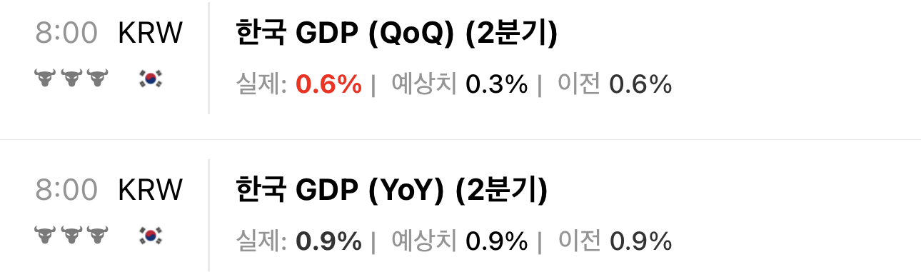 오늘 한국 2분기 GDP가 발표되었다. 결론부터 말하자면 나빠진 것은 없어 보이는 수치다.