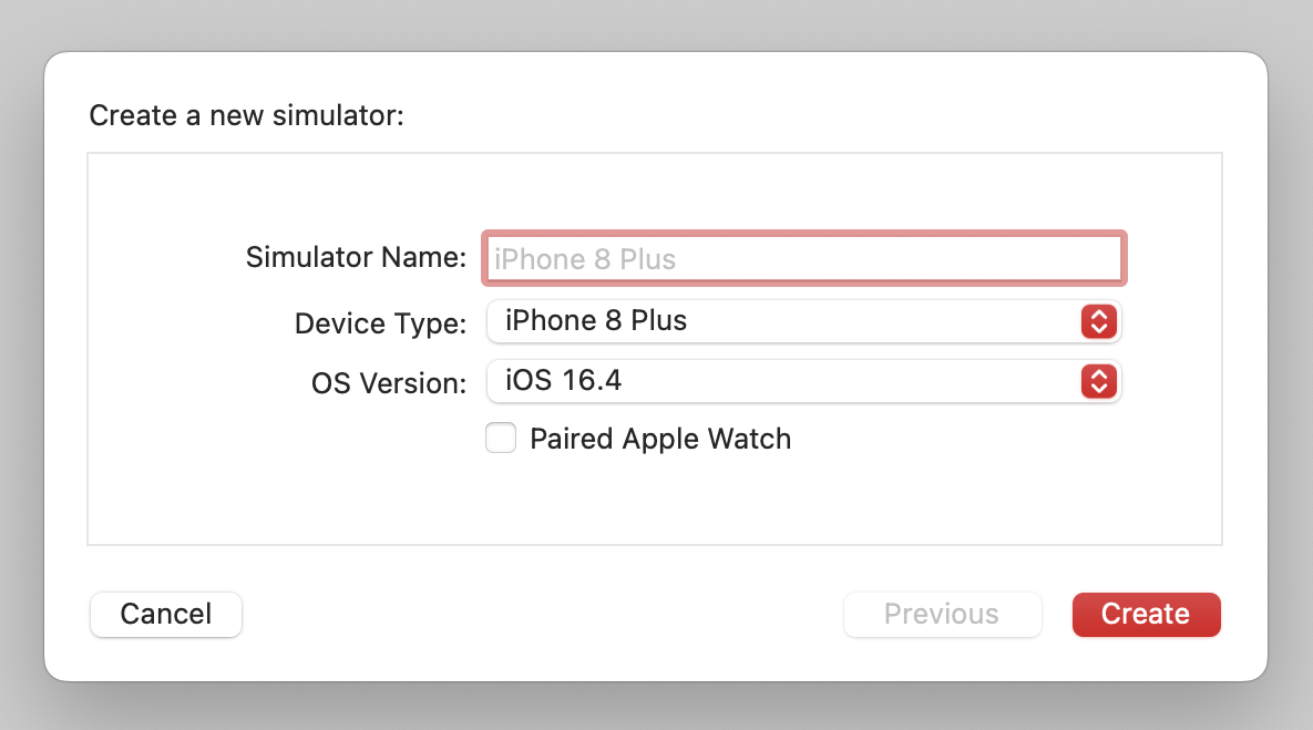 이후 다시 Devices and Simulators 윈도우에서 iPhone 8 Plus 시뮬레이터 추가를 시도해 보자.