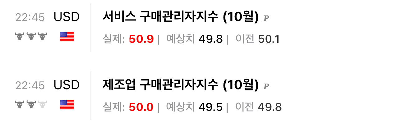 미국의 10월 PMI 예비치는 예상을 깨고 좋은 방향의 결과가 나올 확률이 높아 보인다고 말해주는 것 같다. 서비스 시장은 정말 안 죽는다.
