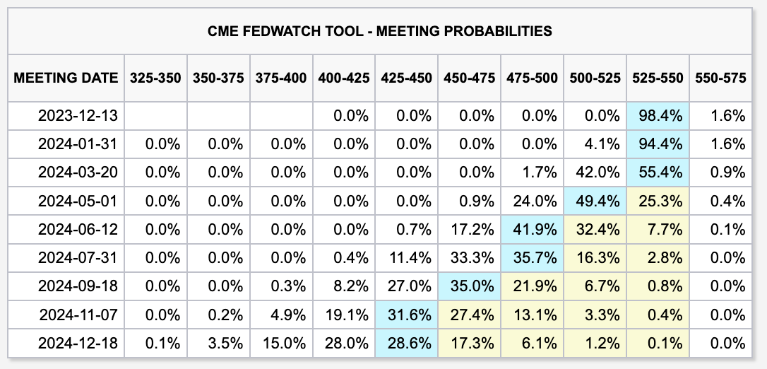 시장의 선택은 12월 FOMC에서 금리가 동결되는 것이다. 거의 모두가 그렇게 생각하고 있다. 아니면 많은 돈을 잃어버릴 수도 있겠지만 이 정도면 잃을 가능성은 참 적어 보인다. 내년 금리 인하 횟수를 네 번으로 예측하고 있는 점은 연준보다 참 발 빠르다. 사실 이렇게 금리 인하가 많이 이뤄진다면 안 좋은 경제 상황을 예상하는 걸지도 모른다.
