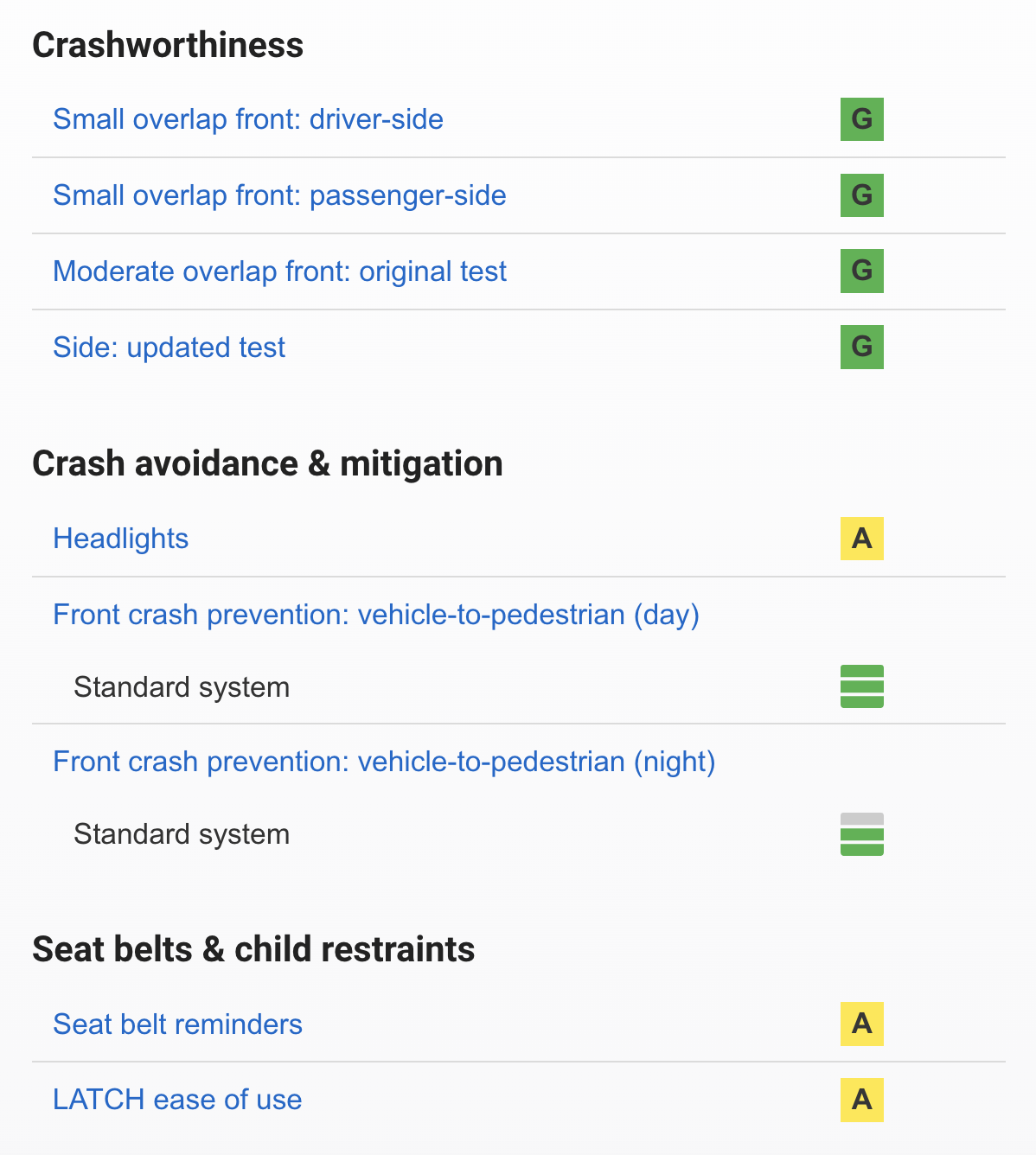 IIHS 테스트의 자세한 내역은 아래 링크를 통해 직접 찾아보자.