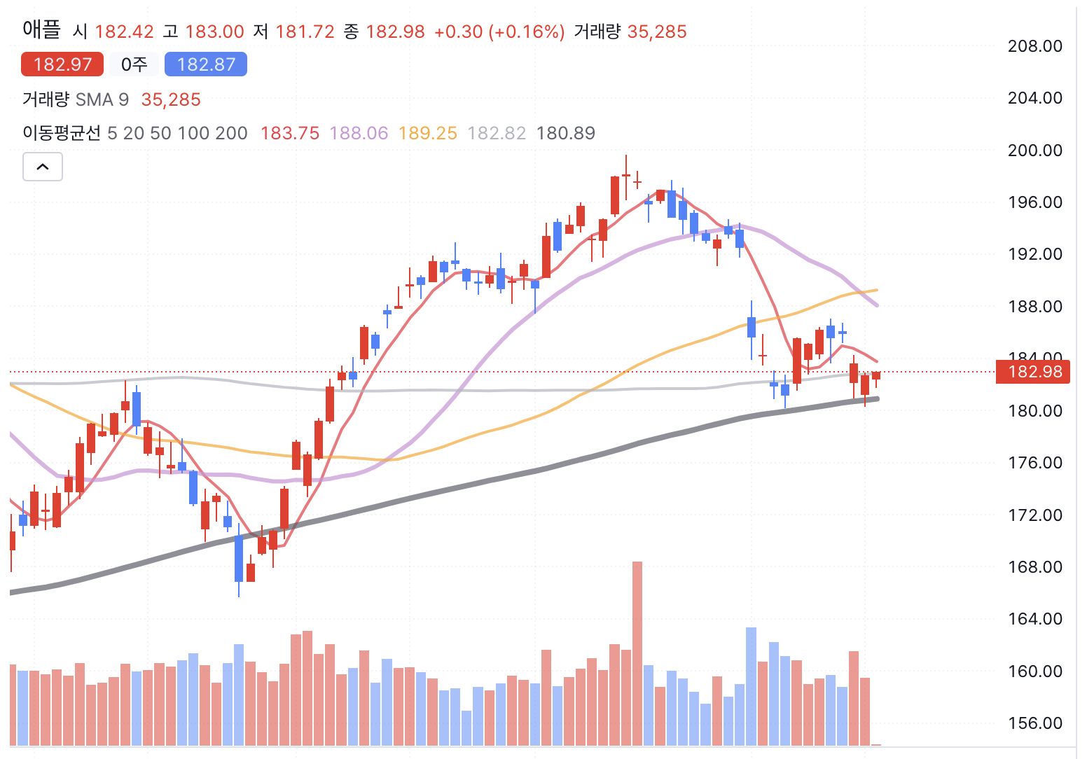 악재: 최근 아이폰의 중국 매출이 4분기 기준 10% 감소하는 등 중국 실적 둔화가 현실이 되어가는 모양이다. 덕분에 애플이 중국에서 이례적인 아이폰 할인 행사를 진행하고 있다고 한다. 주식시장에서 애플의 주가는 하락 방향으로 고개를 틀 것 같은 불안한 형세다. 덤으로 아이폰 할인은 중국 외의 국가도 점점 생기는 느낌이라 추이 확인이 필요해 보인다.