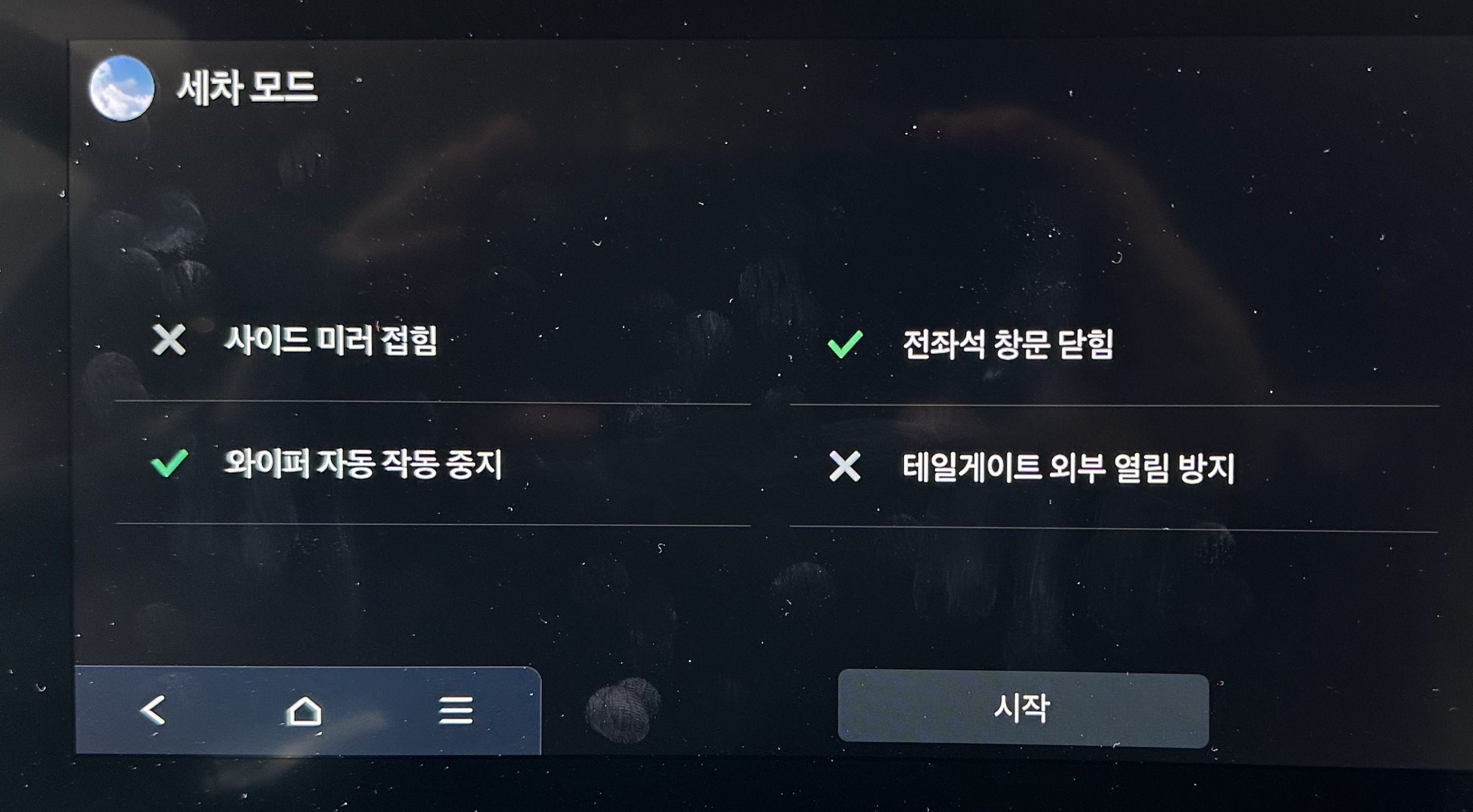 위와 같이 세 번째 페이지에 세차 모드가 보인다. 이걸 눌러보면 어떤 기능인지 알 수 있다. 바로 실행되지는 않으니 부담 없이 눌러보자.