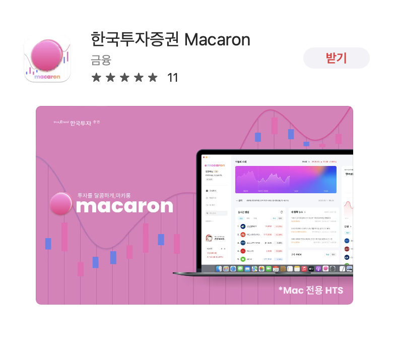 한국투자증권에서 맥(Mac) 전용 HTS(Home Trading System)인 Macaron(마카롱)을 내놨다는 언론 기사를 접하게 되었다. macOS에서 돌아가는 맥 전용 HTS라니 세상 참 오래 살고 볼 일이다. 한국투자증권은 수수료 때문에 안 쓰고 있었긴 했지만, 어쨌든 굉장히 반가운 소식이기에 당장 다운로드하여서 실행해 보기로 했다.