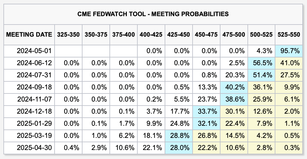 참고로 발표 당시 시장은 6월 인하 확률을 58% 정도까지 떨어뜨렸다. 그리고 한국시각 오늘 오전 10시쯤엔 53.5% 까지 떨어졌었다. 그 수치가 오후 9시 즈음엔 어떻게 되었을까?
