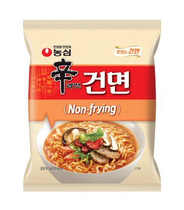 굳이 어디서 나왔는지 밝힐 필요도 없는 국민 라면 중 하나를 건면, 즉 면을 튀기지 않고 건조 가공 형태로 제조한 제품이다. 기존 유탕면 형태의 라면은 하필이면 팜유로 면을 튀기기 때문에 포화지방이 제법 함유되는 편이었기에 고지혈증에는 부담스러운 음식이었다. 그런데 건면은 팜유에 튀기지 않기 때문에 성분표가 이렇게 달라진다.