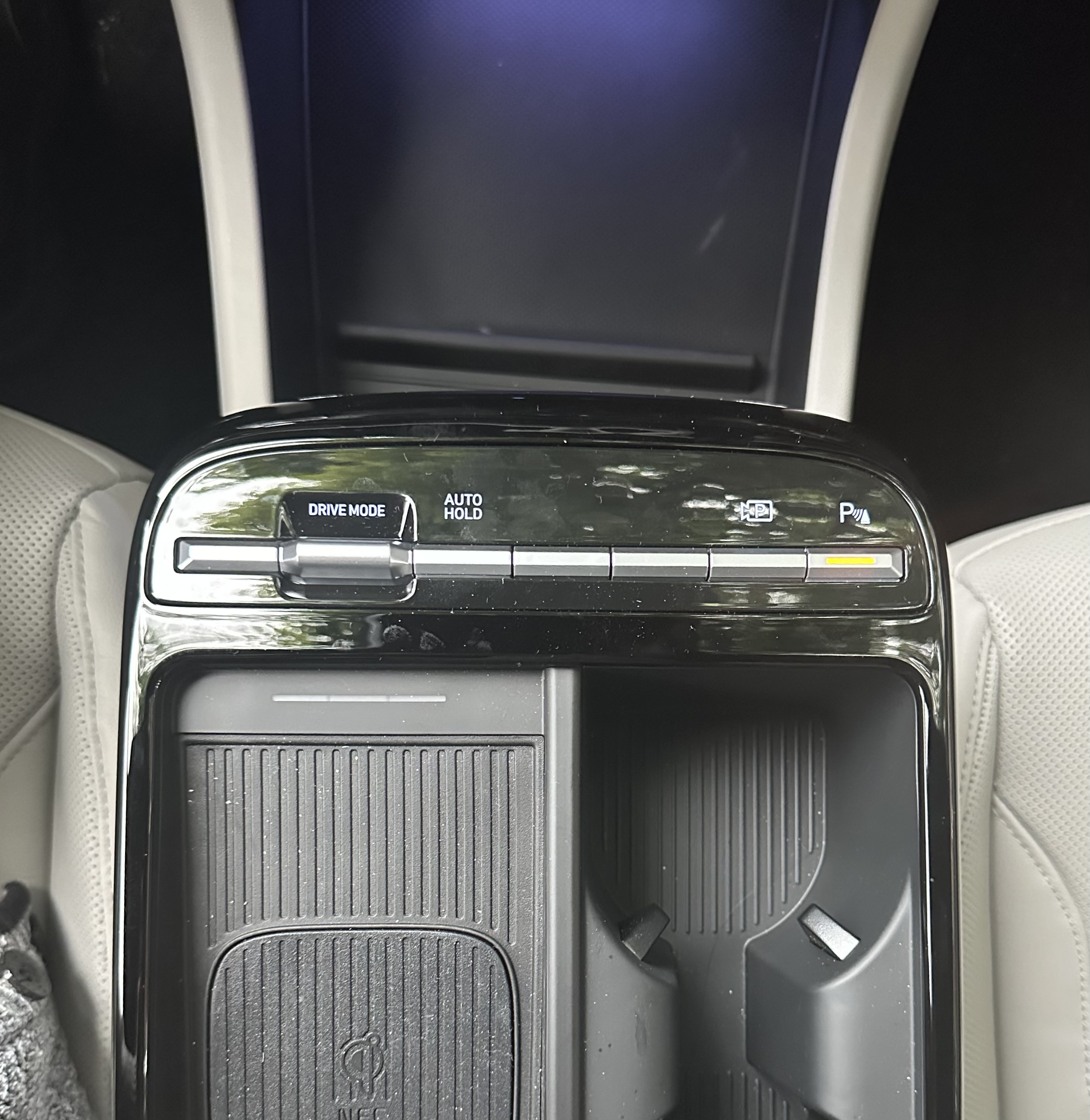 투싼 (NX4 부분변경) 하이브리드 기준 오토홀드(AUTO HOLD) 버튼은 사진과 같이 오른손을 자연스럽게 놓을 수 있는 곳 가까이에 위치한다. 토글 방식이라 누르면 켜지고 꺼진다.