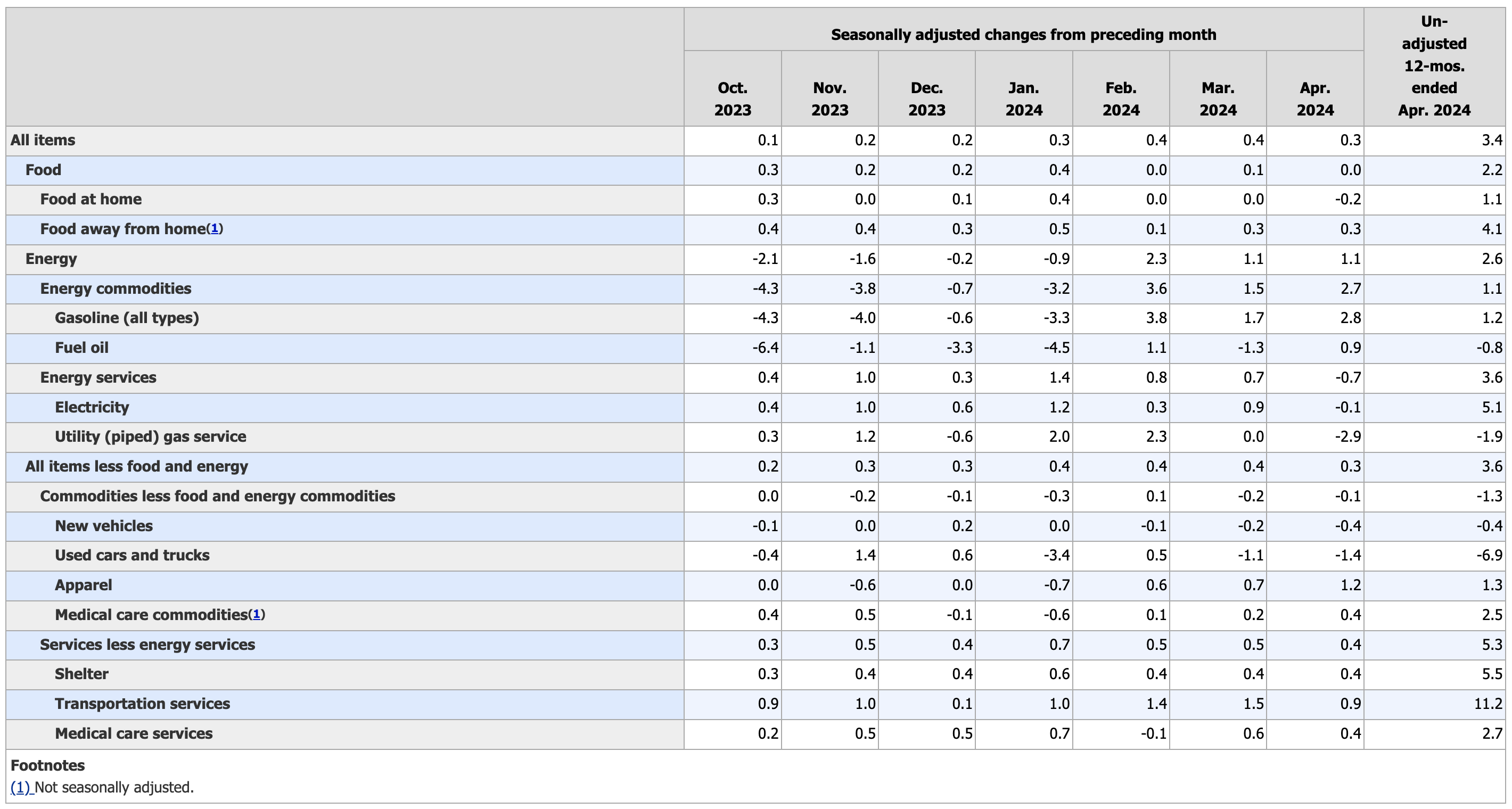 - 헤드라인 CPI MoM 0.3% (-0.1%) 예상치 하회, YoY 3.4% (-0.1%) 예상치 부합