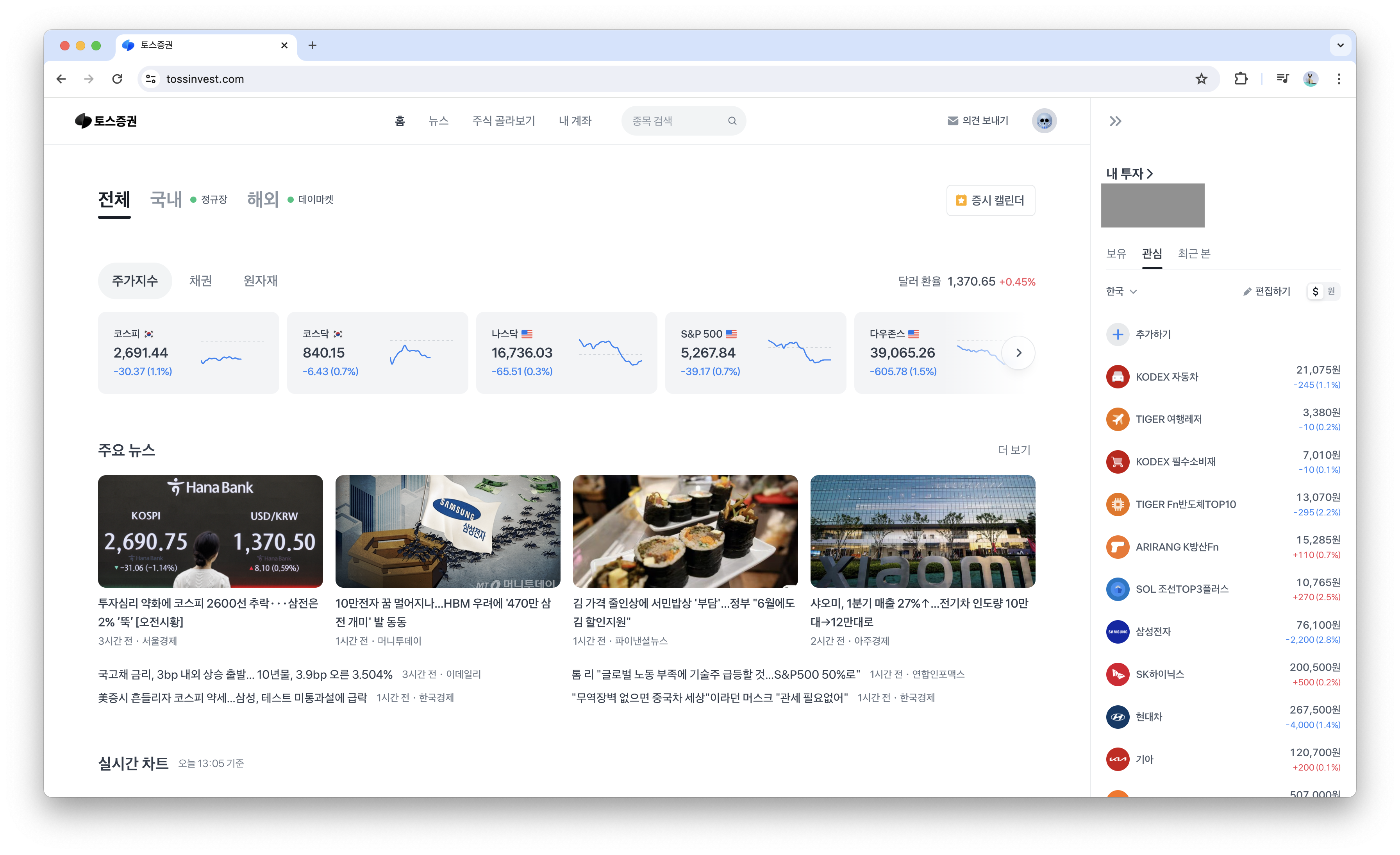 하지만 화면 우측을 보니 상황이 조금 바뀌었다. 보유자산이나 관심종목 등이 우측에 항상 고정되어 보인다. 이 작은 차이점 하나로 “이 정도면 일단 MTS에서 관심종목이랑 차트 왔다 갔다 하던 게 확실히 덜 귀찮을 것 같다”라는 긍정적인 기분이 들었다.