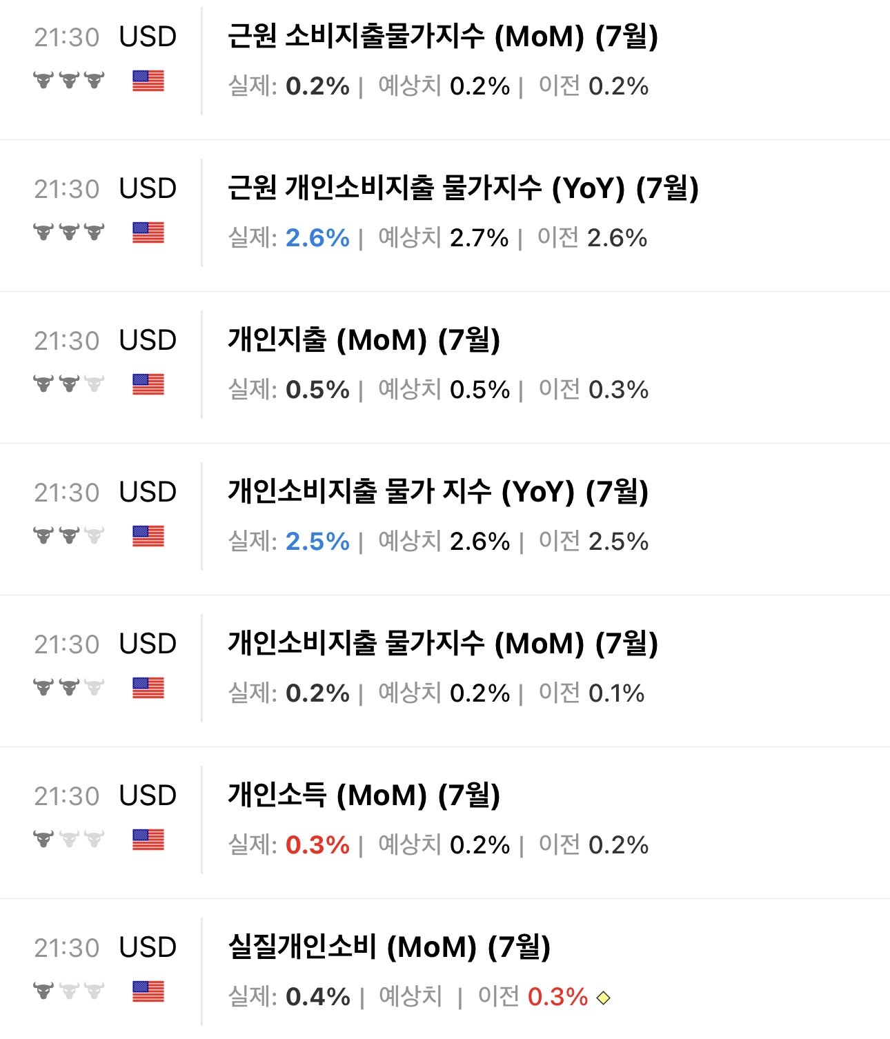얼마 전까지만 해도 PCE 발표 날은 주가가 출렁이는 대명절이었는데 얼마 전 침체 위기(?)를 겪고 난 다음부턴 뭔가 분위기가 많이 바뀐 것 같다. 뭐랄까.... 다들 관심 없어하는 분위기 같다. 어쨌든 PCE가 잘 안 나오면 금리 인하에 장애물이 될 테니 주시는 해야 할 지표이긴 하니 귀찮아도 정리해 보자.