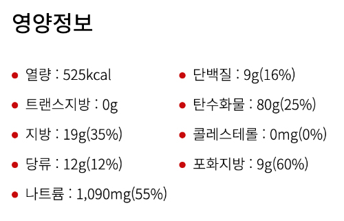 다른 유명한 예로 비빔면의 영양정보도 살펴보자.