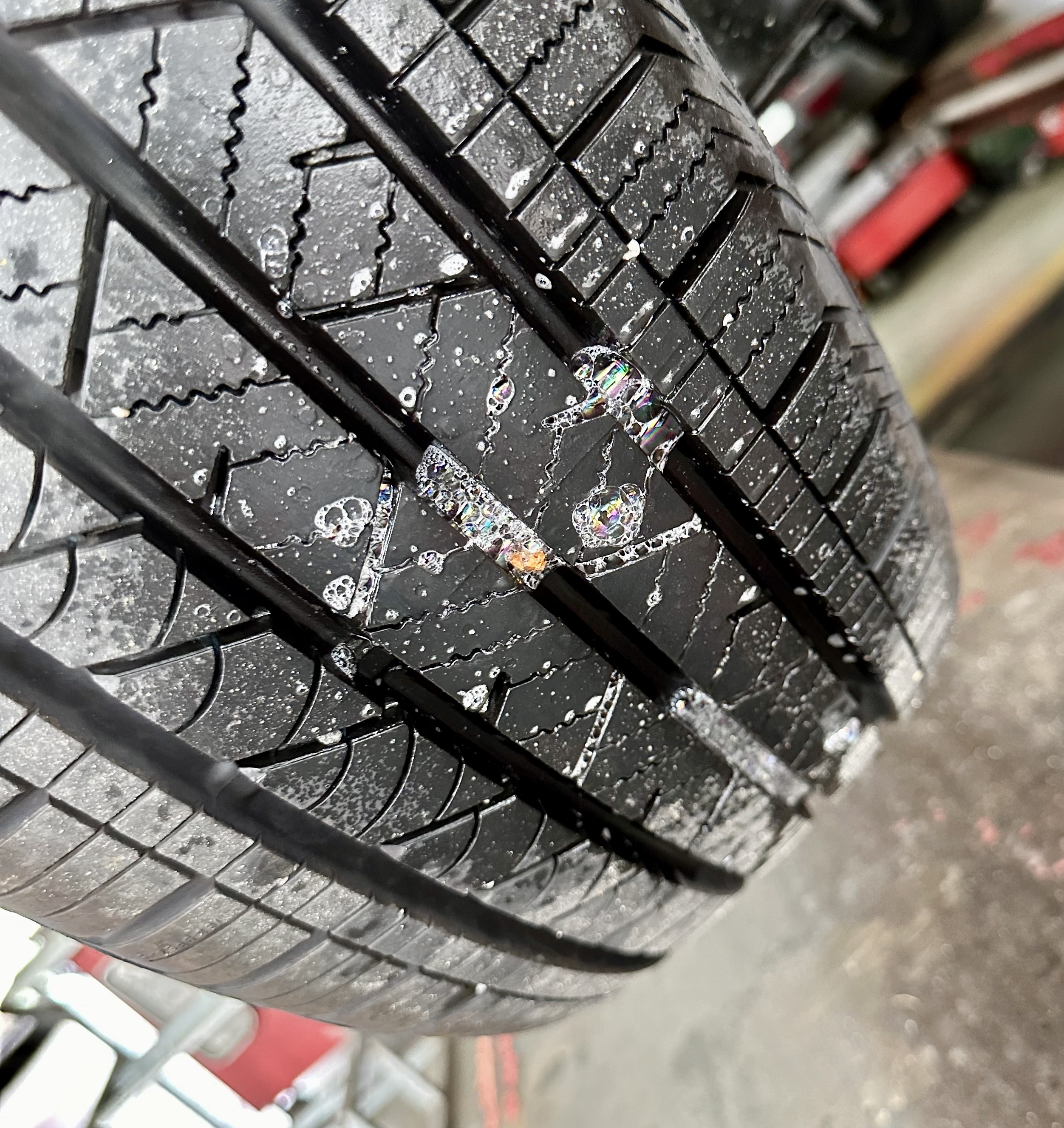제일 많이 채웠던 타이어가 사진 상 33 psi로 공기압이 제일 약하다니 분명 심상치 않은 상황이다. 기온이 낮아져서 전반적으로 공기압이 적게 측정되기는 했겠지만 문제의 타이어의 공기압이 유독 낮다는 점에서 펑크가 났다고 보는 게 합리적일 것 같다.