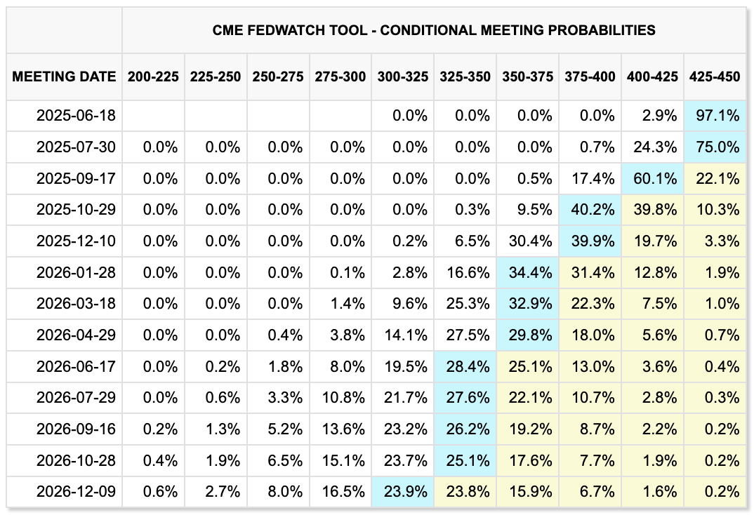 일단 시장에선 올해 중 2회 금리 인하를 점치는 모양이다. 다만 당장은 금리를 낮출 가능성을 낮게 보는데 관세 영향이 더 늦게 나타날 가능성을 보는 것일 지도 모르겠다.