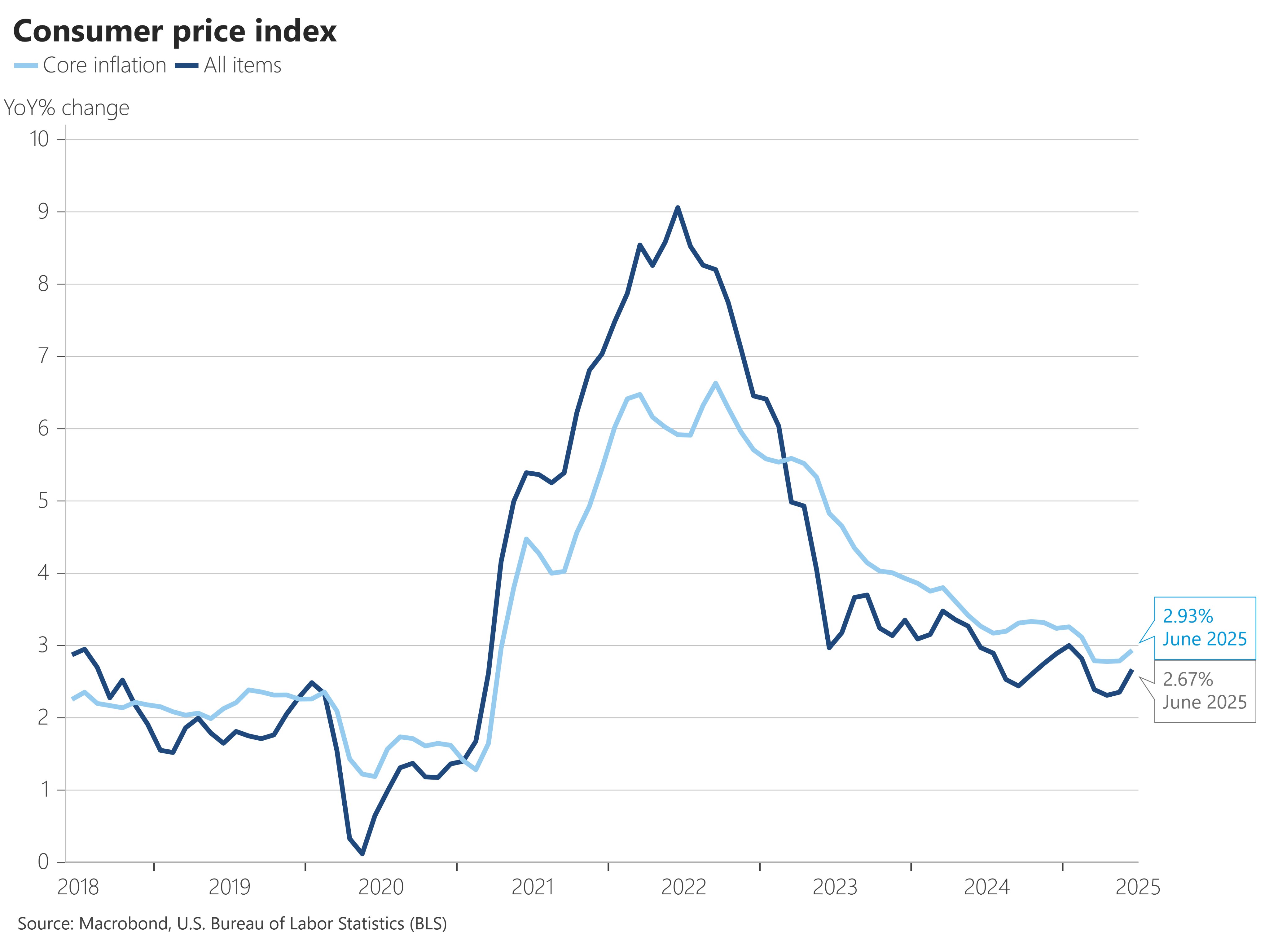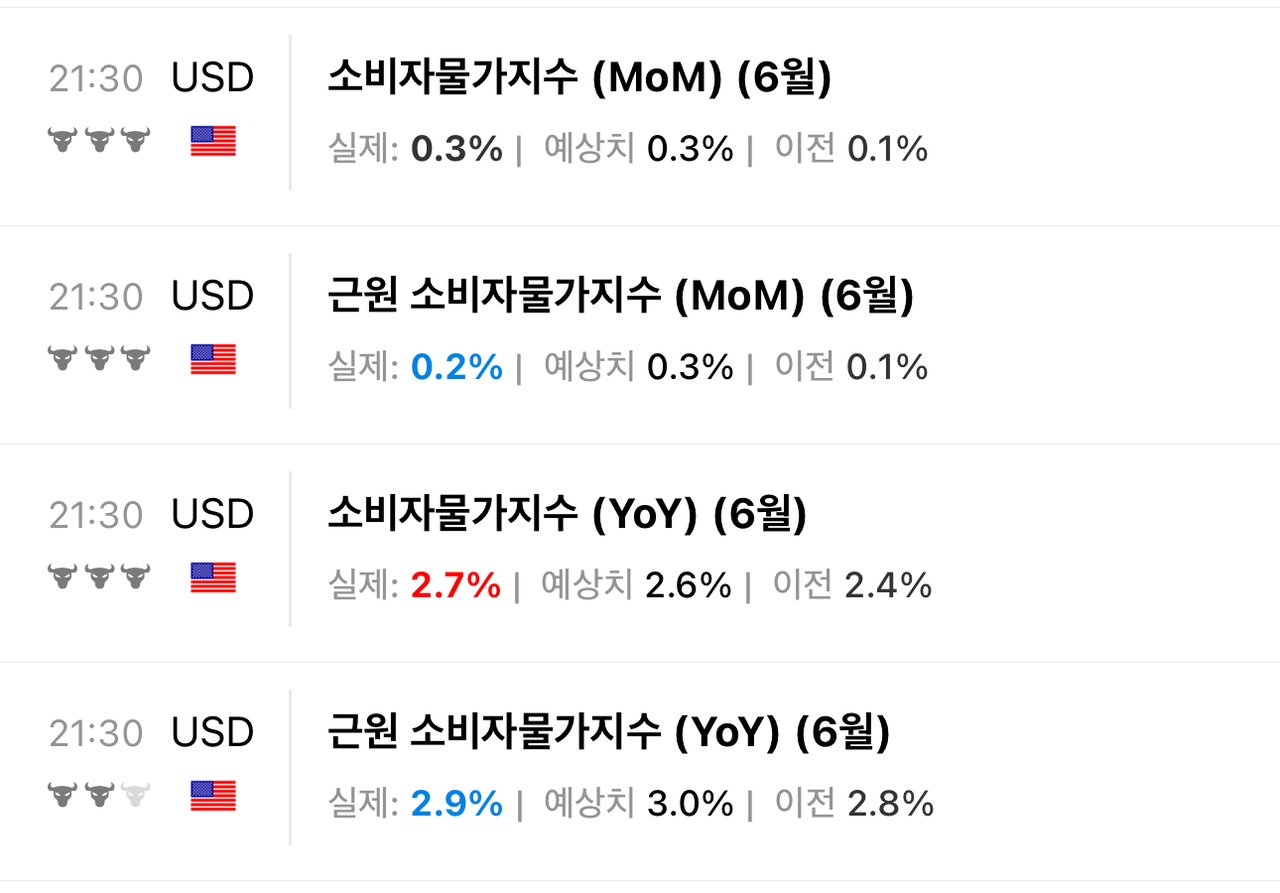 최근에는 관세로 인한 인플레이션 영향이 시장에서 가장 관심 가지는 뉴스거리가 되어가는 것 같다. 그런 의미에서 막 발표된 미국의 6월 CPI를 좀 살펴봐야 할 것 같다.