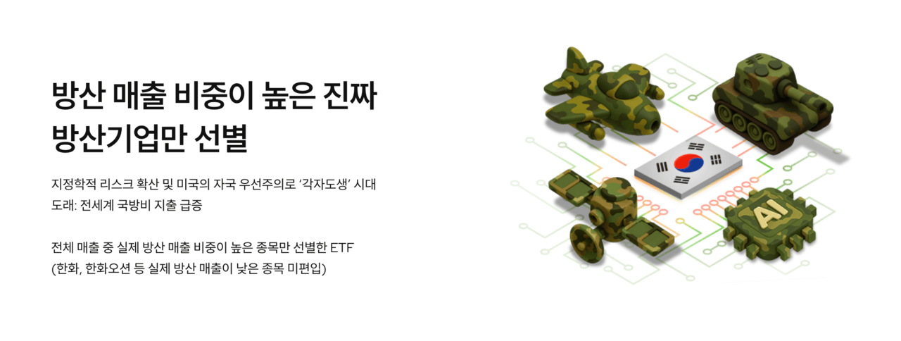개인적으로 여러 의미로 방산(방위산업) 기업에 관심이 많다. 최근 들어 더욱 심해지는 지정학적 리스크 때문도 있고 한국이라는 분단국가의 국민이라는 점도 있지만 특히 투자 목적으로써 그렇다. 그런 의미로 새롭게 등장한 한 방산 ETF가 눈길을 사로잡았다. 이미 'PLUS K방산' ETF를 소소하게 투자하면서 가지고 놀고 있긴 하지만 상장 이후 가격이 너무 뻥튀기되어 약간 부담이 생긴 겸 새 ETF를 살짝 분석... 까지는 아니고 구경해 보기로 했다.